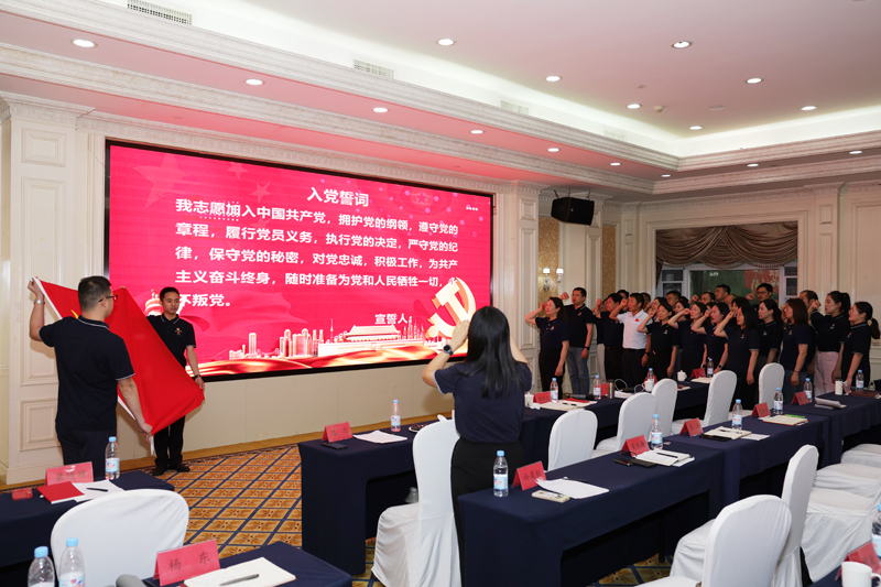 388vip太阳集团党支部于6月29日组织了一次主题为“重温入党誓词 汲取奋进力量”的庆七一建党节党日活动。董事长徐辉、总经理兼党支部书记梁燕,以及全体党员、中高层干部和退役军人,共计50余人参加了此次活动。
